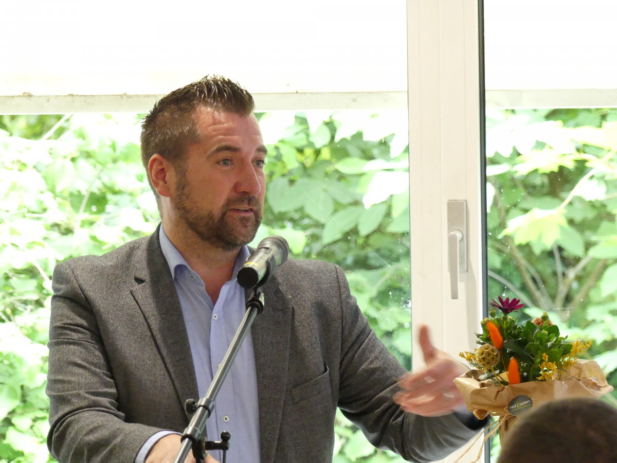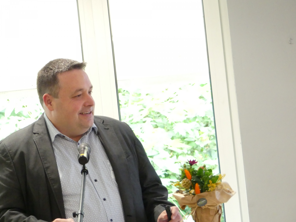 Thomas Gilles sprach als Selbstvertreter, zu den ca. sechzig Gästen, für den Landesbeirat Behinderter Menschen der Lebenshilfe in Rheinland-Pfalz. Der Beirat hat in einem Filmbeitrag dargelegt, warum junge Menschen eine Arbeit in der Eingliederungshilfe in Betracht ziehen sollten.